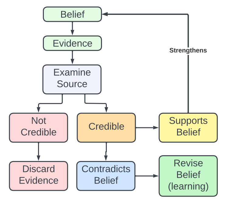 If the source is not credible, we discard it and move on. If it is, we need to look at it in the context of our existing beliefs. Either it reinforces what we already know, and strengthens that belief, or it contradicts what we already know, and we have to revise our beliefs to accommodate the new information.